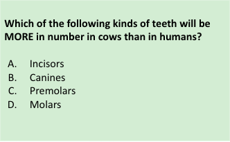 - Choosing options A, B or C may indicate a lack of understanding of the kind of food herbivores eat and/or the function of different kinds of teeth